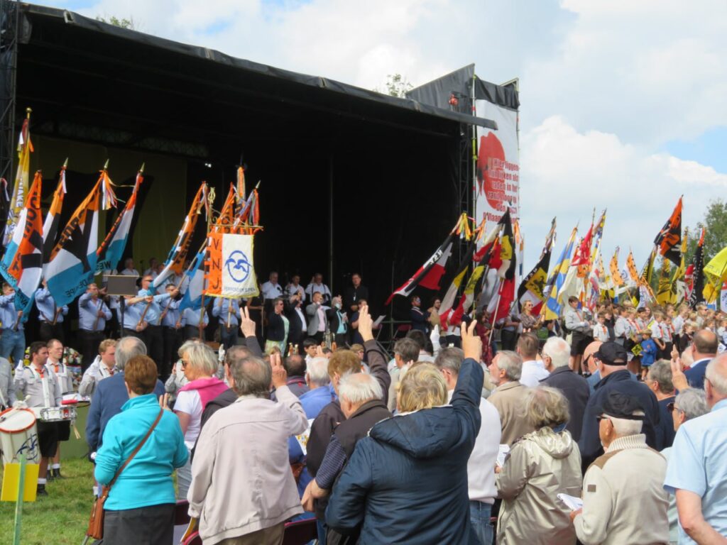 Ein kurzer Redebeitrag stammte von einem in Frankreich lebenden Flamen, der auf die noch immer herrschende Unterdrückung der flämischen Sprache und Kultur in Frankreich aufmerksam machte. Zahlreiche vaterländische Lieder und ein gemeinsamer Treueschwur unter den flatternden Traditionsfahnen rundeten die Manifestation ab.
